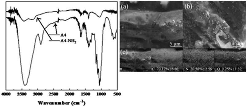 摘要:本发明公开一种氨基功能化纸张、破乳剂及其制备方法和应用。将纸张通过无溶剂策略接枝氨基,即制备得到所述氨基功能化纸张。所述氨基功能化纸张能作为破乳剂在含油废水中的应用,对含油废水乳液进行破乳处理,处理后水相的透光率可以达到89.6%,且除油率可高达99.15%。所述破乳剂具有用量少,破乳温度低、破乳效率高、时间短,无毒副作用,易于降解,对环境污染较小的特点,而且能适用于不同酸碱度和高盐度含油废水乳液,适应性好,具有较好的应用和推广前景