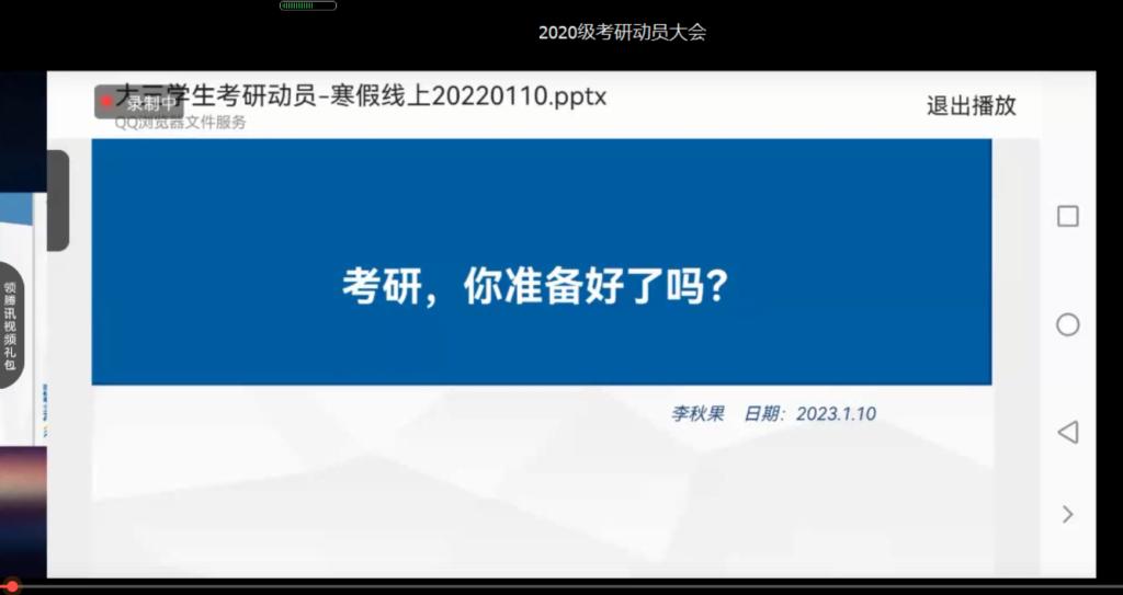 (通讯员:李韵王陈)为加强凤凰体育 学风建设,提升大三学生对于考研的认知,更早的确定考研目标,明晰考研计划、充实假期生活。2022年1月10日下午3:00,凤凰体育 通过腾讯会议开展线上2024届考研动员大会,出席本次会议的有凤凰体育 党委副书记李秋果、辅导员王陈,本次会议由辅导员王陈主持,凤凰体育 2020级全体本科生参加。