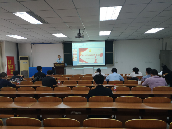 在14教北201召开全院干部工作会议,会上刘书记作了题为“不断改造我们的主观世界、确保从思想上入党”的专题党课。会议由颜学敏院长主持,全院三十五名干部全部参会。