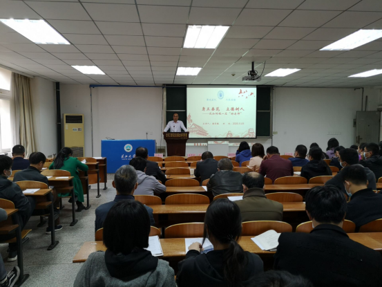 在14教北201召开会议,颜院长给全院教职工讲党课,主题为“身正垂范 立德树人 谈如何做一名老师”。会议由刘书记主持,全院一百余名教职工参会。