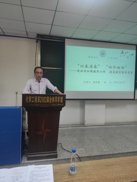 在14教北201召开会议,颜院长作“以本为本,四个回归,谈如何加强教学工作,提高教育教学质量”为主题的形势政策专题报告。报告会由刘书记主持,全院一百余名教职工参会。