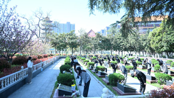 四十余位学生党员前往荆州市烈士陵园,开展“清明祭扫,缅怀先烈”主题党日活动,沉痛悼念为国捐躯的烈士和所有为中华民族解放事业做出贡献的革命先辈。