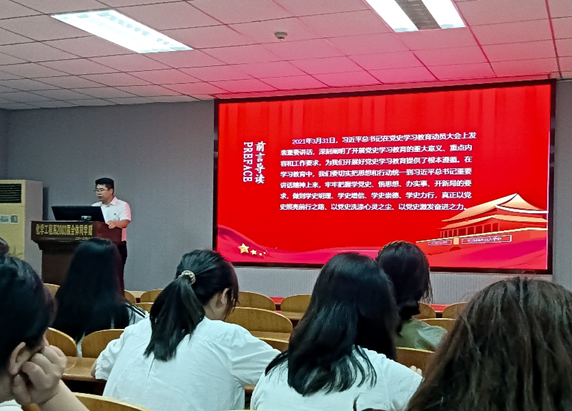 在 14 教北 201 室举行了春季学期入党积极分子培训党课。本次培训以“学习党史 筑牢信念”为主题,由党委副书记杨会军担任主讲人。