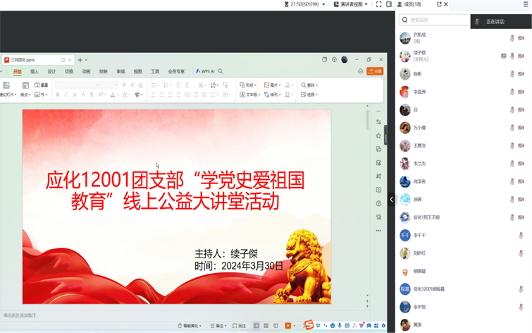 于3月26日至4月20日组织各年级同学通过线上线下相结合的方式观看“学党史爱祖国教育”线上公益大讲堂活动,积极学习并开展研讨。