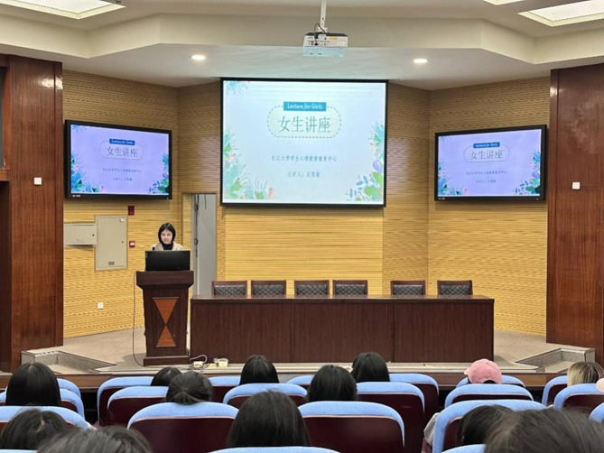 于11月8日晚上在农科大楼1056报告厅举办2023级女生讲座,学生心理健康教育中心石慧敏老师主讲。