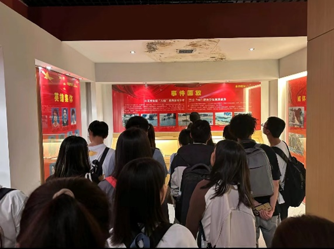 随后步入二楼,讲解员通过文字、图片、物品等向同学们生动的讲述了“10.24”英雄群体的英勇事迹,同学们对此感到无比的自豪与感动。他们勇敢无畏、无私奉献的伟大行为穿越了时空,给我们留下了宝贵的精神财富,也时刻激励着每位长大学子要不惧困难、奋勇当先,他们舍己为人、见义勇为的“人链”精神将被我们永远铭记。同学们向英雄们表达了哀思与敬仰,同时也承诺将会更加敬畏生命、敬畏自然。