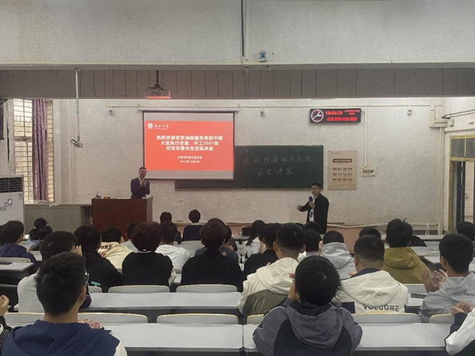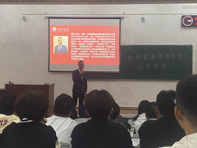 邓勇向同学们介绍了安东油田服务集团的整体情况,同时介绍了自己在安东石油一步一步从基层做起,深入钻井现场、开辟东北业务、西南业务的工作经历,很短时间内带领公司西南办事处实现销售收入破“亿元”;后来先后担任公司环保集团公司经理、中国区副总裁兼西南区总经理、中国大区执行总裁。他结合自己的求学工作经历以及安东凤凰体育赛事直连 - 2026 全网最高水位滚球 | 注册即送 588、每日洗码回馈 1.2%,向同学们分享自己的人生感悟。他表示,人因梦想而伟大,更因行动而成功。他勉励同学们要拿出勇气,拿出干劲,继续奔跑、不懈奋进,阔步新征程,昂首向未来。他向同学们分享了自我管理的十大习惯,希望同学们可以从中获得感悟,成为一名有理想、敢担当、能吃苦、肯奋斗的时代新青年。