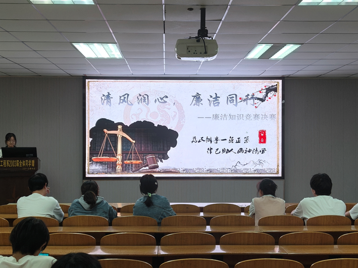 廉洁知识竞赛围绕廉洁文化、党规法纪、反腐败斗争等内容开展,共计有160多名学生参赛。初赛和决赛分别于9月24日和10月10日举行,初赛为闭卷笔试答题,决赛为线下竞答比赛。通过多类型题目和多形式的赛制设置,极大调动选手们的参与性与积极性。在竞赛过程中,选手们积极准备,展现出了扎实的知识储备和出色的心理素质。决赛现场气氛活跃,参赛选手反应迅速,分秒必争,选手们的精彩表现赢得了台下观众的阵阵喝彩。