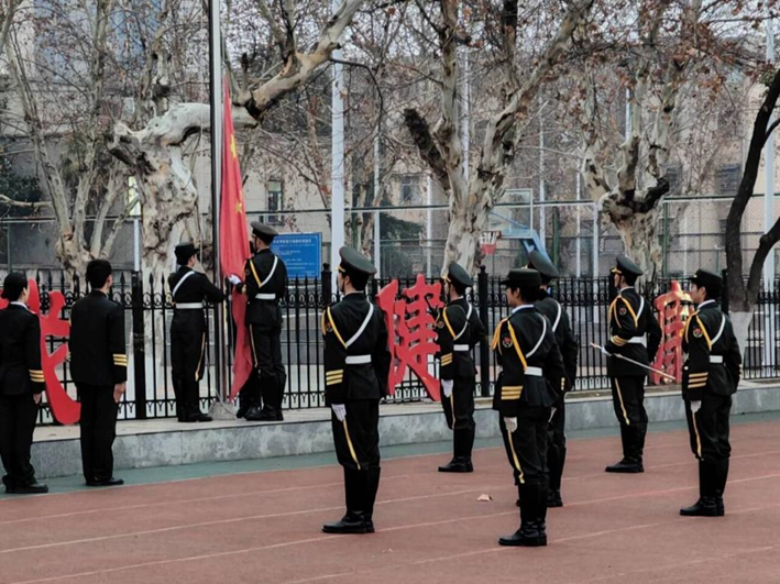 仪式开始,国旗护卫队身着戎装,昂首挺胸,迈着整齐而坚定的步伐,护送鲜艳的五星红旗至升旗台。宏伟的国歌奏响,五星红旗冉冉升起,全体师生庄严肃立,行注目礼,唱国歌。