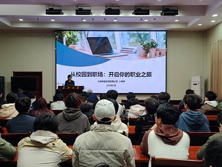 邵巧主任以《从校园到职场:开启你的职业之旅》为题分享经验。她介绍了公司发展优势、历程、人才理念、凤凰体育赛事直连 - 2026 全网最高水位滚球 | 注册即送 588、每日洗码回馈 1.2%,并结合自身经历,通过生动案例深入剖析学生与职场人的差异,深度解读Vuca时代和热门行业发展趋势,说明行业对复合型、创新型人才的需求。最后,邵巧主任分享了通往成功的五个秘籍,并深入讲解职业规划的重要性与实施步骤,鼓励要同学们在行动中成长,在担责中进步。