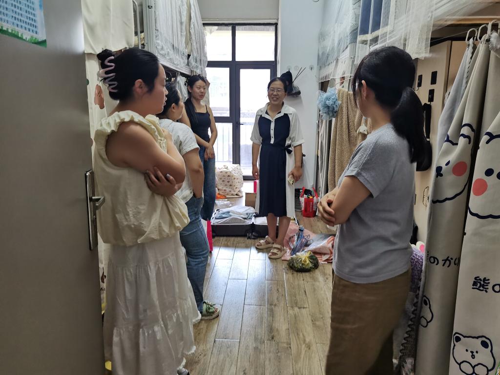 老师们与毕业生亲切交谈,详细了解毕业去向、就业情况及未来规划。对于已就业同学,勉励他们在工作岗位上踏实肯干,将理论知识运用到实践中去;鼓励继续深造的同学,希望他们在学术道路上保持探索精神,勇攀学术高峰;对暂未落实去向的学生,结合当前的就业形势,给予职业规划指导,并承诺“就业帮扶通道永不关闭”。同时,老师们反复强调证件保管、行李托运规范,提醒学生警惕租房诈骗和求职陷阱。辅导员同步检查宿舍水电安全,叮嘱离校前办理退宿手续,保障“文明、安全、有序”离校。