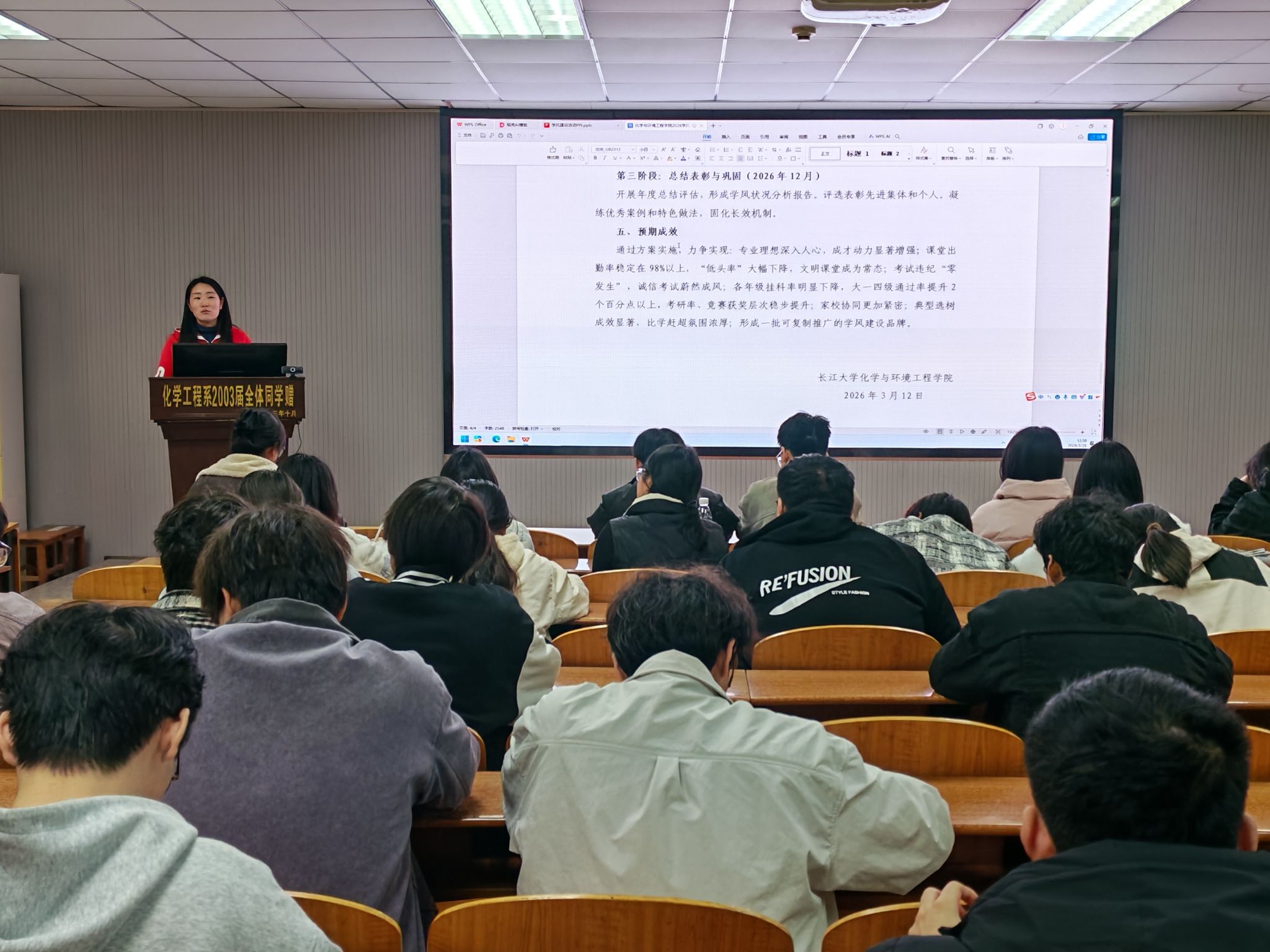 于3月26日12:30,在14教北201召开2026年学风建设专项行动动员大会,学工办主任王陈,辅导员王娜、周学素以及23级、24级学生干部参加会议。