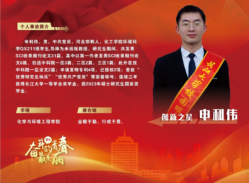 研究生入学以来,申利伟继续发扬认真学习,刻苦耐劳的精神,在学好课本知识的基础上,积极参与课题组的项目研究,阅读大量文献,提高自己的理论水平。同时,他还积极开展实验,把理论知识运用到实践中去。研究生期间,在老师和实验室同学的帮助下,他以第一作者在Fuel,Cellulose、Chemosphere,Colloids and Surface A-Physicochemical and Engineering Aspects等期刊上发表了6篇学术论文,其中中科院一区论文3篇,二区2篇,三区1篇。另外,参与撰写论文20余篇,目前还有两篇一作期刊论文在投稿返稿阶段;参与撰写国内发明专利5项,目前已授权2项。