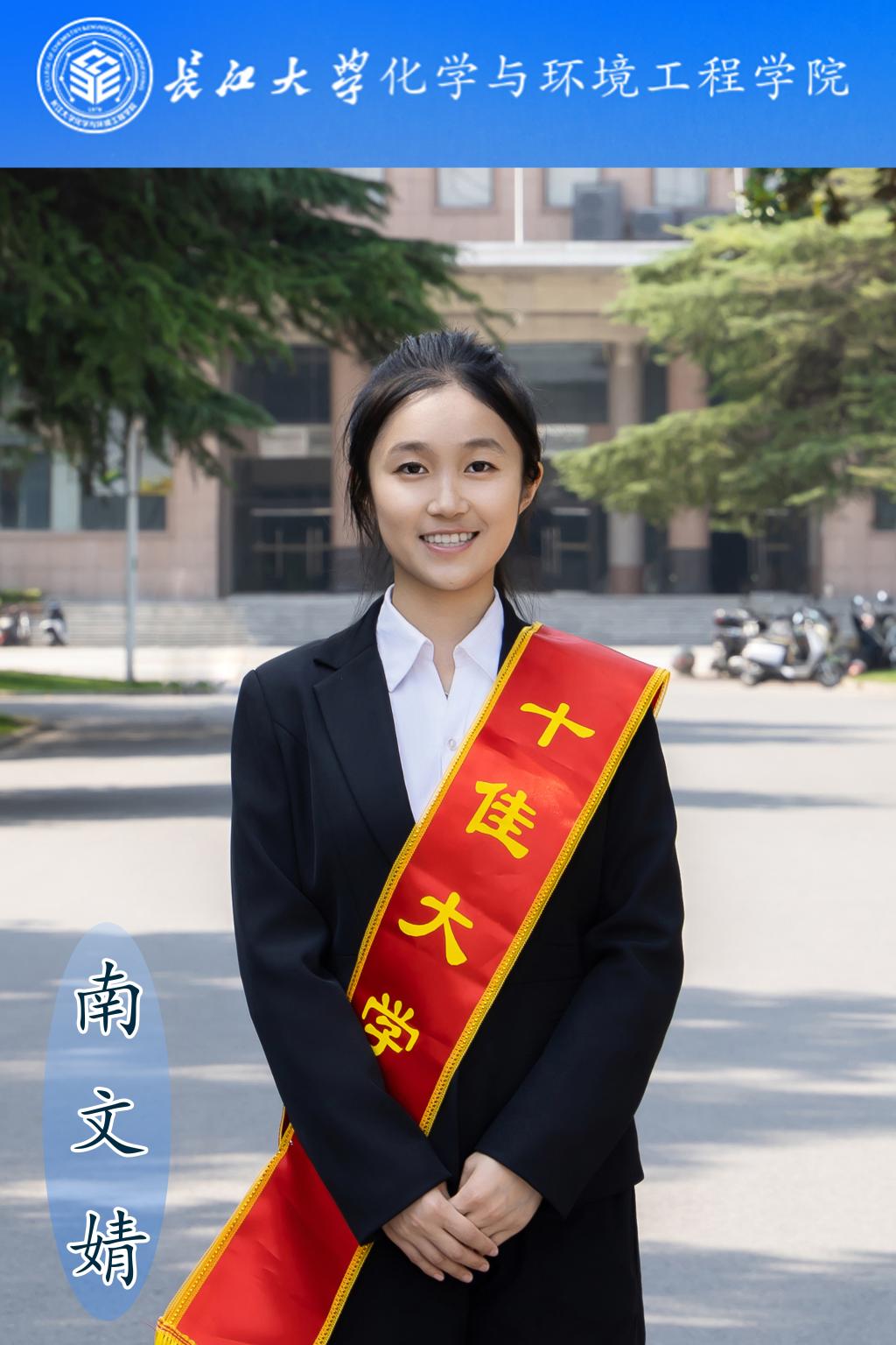 南文婧同学大学期间始终秉持"厚积薄发,行稳致远"的信念,在学业方面取得了优异成绩。她连续三年绩点保持在4.1以上(最高4.49),GPA达4.32,现已成功推免至南开大学。英语能力突出,四级642分、六级568分,获大英赛二等奖(两次)、词达人省赛二等奖(两次)、外研社国才杯英语阅读大赛校赛三等奖、21世纪杯全国大学生英语演讲比赛校赛三等奖等多项英语竞赛奖项;同时考取计算机二级、普通话二甲、高中化学教师资格证等证书,通过国才和跨文化能力考试。她曾两度荣获国家奖学金,获评"十佳大学生"、"万人创百星学习之星"、"三好学生标兵"等称号,并在青马班中获评优秀学员。"不满是向上的车轮"——她始终以谦逊进取的态度,在成长路上不断突破自我,砥砺前行。
