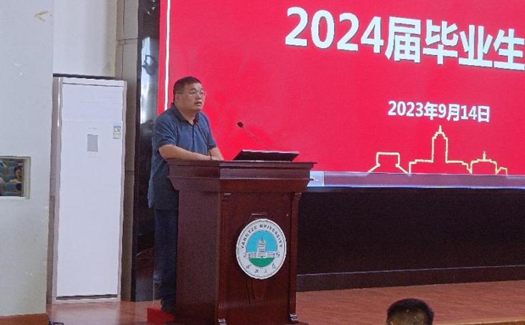 副院长吴爱斌、肖围,党委副书记杨会军,学工办主任刘敬敏,就业专干周学素老师出席此次大会,2024届全体毕业生参会,会议由刘敬敏老师主持。
