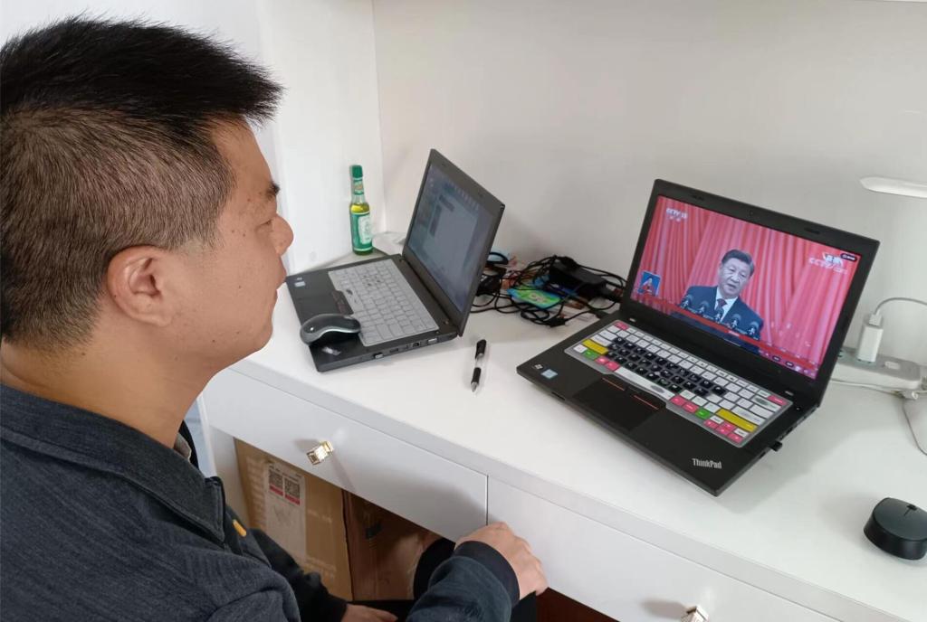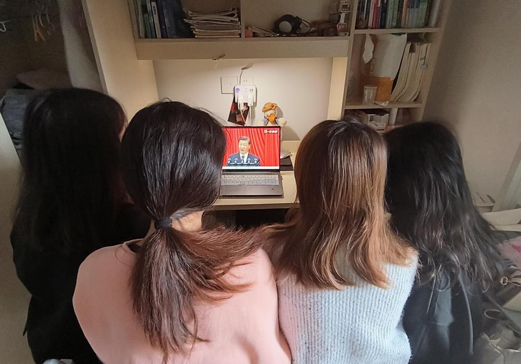 应化12001班续子傑与室友一起观看二十大开幕直播