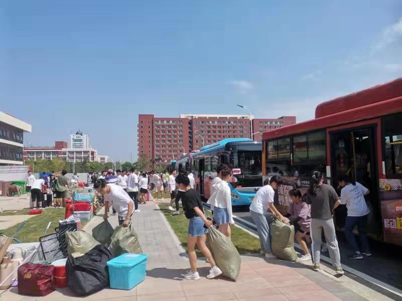 还在每辆搬迁车辆安排了随车学生干部和工作人员,负责学生行李堆放、现场对接和上下车安全,并组织班主任老师到场协调指挥。
