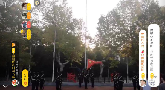 领导、辅导员、17级以及18级全体男生参加现场升旗仪式,17,18级女生在家里通过“云直播”的方式参加线上升旗仪式,共同感受这场特别的“开学礼”。
