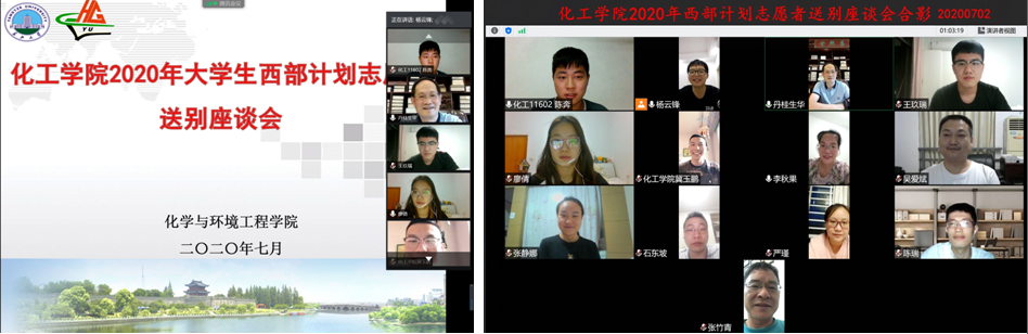 举行2020年西部计划志愿者送别座谈会。入选西部计划3名志愿者、班委代表、党委书记刘桂生、党委副书记李秋果、分团委书记严瑾、班主任、辅导员等出席了座谈会。