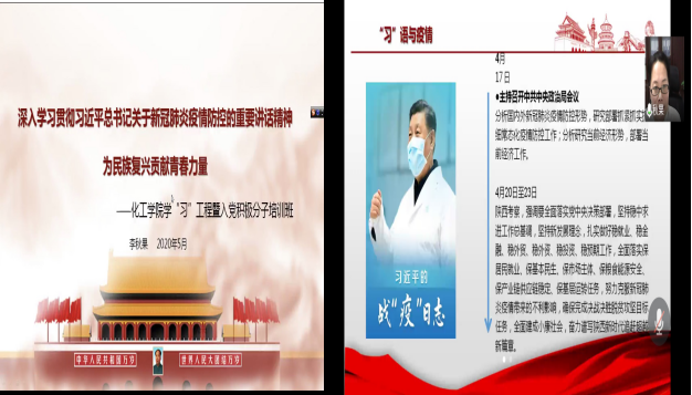 此次培训由副书记李秋果主讲,李书记主要从习语与疫情、信仰和理想、思考与行动三个方面来进行讲述。首先她向同学们分析讲述了目前全球疫情形势,并将资本主义国家与中国的防疫防控进行对比。她表示,疫情发生之后,党中央为抗击疫情制定正确战略战策,各地纷纷采取最严格、最全面、最及时的防范举措。这正是因为中国特色社会主义制度的优越性。
