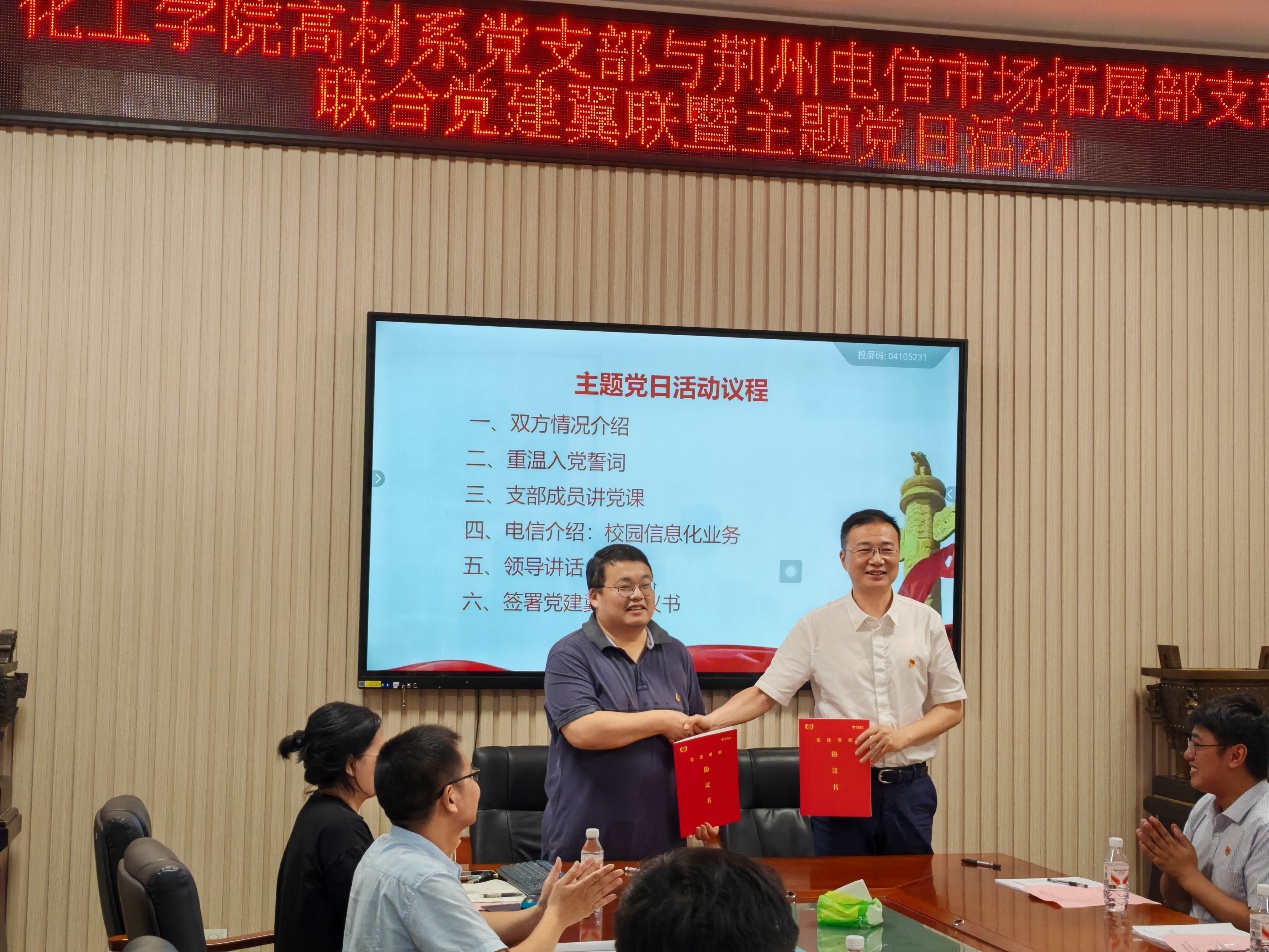 5月22日下午,湖北省高校“双带头人”教师党支部--凤凰体育 高分子材料与工程系党支部与中国电信荆州分公司市场拓展部党支部联合举行党建翼联主题党日活动,通过组织共建推动党建与业务双融双促。双方党支部书记肖围、杜海和21名党员出席活动。活动由湖北省高校“双带头人”教师党支部副书记李传华主持。 活动通过"四个一"环节展开深度交流:组织共建环节,双方通过支部互相介绍加深了对彼此组织建设、业务特色和党建成果的系统认知;思想共学环节,全体党员面向党旗庄严宣誓,以重温入党誓词强化党性修养;专题共研环节,湖北省高校“双带头人”教师党支部宣传委员张春燕同志作《坚持自立自强 突出应用导向 推动人工智能健康有序发展》专题党课,通过剖析AI技术前沿动态与产业应用场景,激发党员立足专业岗位推进科技创新的使命感;业务共促环节,荆州电信市场拓展部党支部王子徽系统展示了中国电信教育信息化解决方案,重点解析了5G+智慧校园、教育大数据平台等数字化实践成果,并结合荆州电信与凤凰体育 实施案例进行了分析解读。 双方支部书记在总结讲话中指出,此次联建开创了校企党组织"理论联学、资源联享、发展联促"的新模式,后续将建立"组织联建、活动联办、人才联育"的常态化机制,切实把党的政治优势转化为发展动能。活动最后,双方正式签署《党建翼联合作协议》,约定通过定期开展技术研讨、项目合作、人才交流等多元化共建形式,共同探索"党建+业务"融合发展的创新路径。 此次共建活动既包含理论武装的思想淬炼,又注重实践层面的业务对接,通过搭建校企协同创新平台,为教育信息化建设与新材料研发应用领域的深度合作奠定了坚实基础。同时也是全国高校“双带头人”教师党支部书记“强国行”专项行动走深走实的重要环节。 (审核:肖围;编辑:王志权)