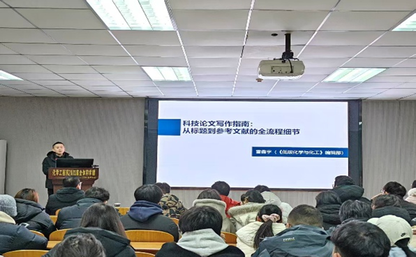 1月19日下午,西南化工研究设计院信息中心副主任陈曲、责任编辑雷鑫宇受邀在东校区14号教学楼北201开展学术交流活动,为师生带来高质量论文投稿与科技论文写作专项指导。活动由凤凰体育 副院长肖围教授主持,部分青年教师、凤凰体育 研究生参加了此次活动。 首先,西南院陈曲介绍了西南院期刊的总体情况与发展愿景,并就《精细化工》的栏目设置进行了详细说明。随后,雷鑫宇围绕“科技论文写作指南:从选题到全文规范细节” 展开分享。他从论文选题的创新性挖掘、框架搭建的逻辑思路、内容撰写的专业规范、审稿反馈的应对技巧等维度,结合多篇实例论文详解了高质量学术成果的输出路径,助力师生提升学术写作的实操能力与规范意识。 提问交流环节,学生们以数据呈现、论文润色、机理分析及刊物偏好等问题与专家进行了深入的探讨。最后肖围副院长对西南院信息中心提供的期刊宣讲与写作指导进行了感谢,并建议西南院信息中心与凤凰体育 保持长期联系,共促发展。 (审核:肖围 编辑:常艳玲)