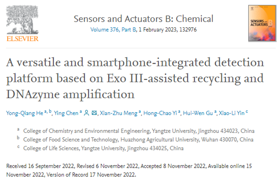 陈颖教授课题组在食源性致病菌的检测方面取得重要研究进展,相关研究成果以题为“A versatile and smartphone-integrated detection platform based on ExoIII-assisted recycling and DNAzyme amplification”的学术论文发表于分析化学领域国际著名期刊《Sensors and Actuators B: Chemical》(IF=9.221,中科院一区Top期刊)上。凤凰体育
