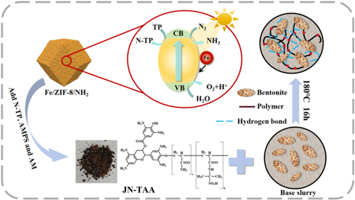内容简述: 2025年8月26日,Chemical Engineering Journal 刊发了我院罗霄副教授课题组关于光催化固氮制备降滤失剂的最新研究成果。该研究以氮气为氮源,首先通过光催化固氮方式将单体中的羟基还原成氨基,以增强单体的氢键键合作用,再通过光催化聚合方式,在较低温度与常压下合成了具有优异抗温耐盐性能的降滤失剂,该路线条件温和、节能低碳,绿色化学特征显著。 论文题目为“From nitrogen to ammonia to ammoniating natural biomass: the applying of photocatalysis in preparation the temperature and salt-resistant filtrate reducer”,罗霄副教授和硕士研究生王培培为论文共同第一作者,罗霄副教授为通讯作者。 降滤失剂是钻井液中一大关键处理剂,在钻井过程中主要起到附着井壁,形成薄、密、韧的“滤饼”,从而减少水分和钻井液的滤失的重要作用。但降滤失剂也容易受到高温高盐的环境影响,高温会加剧降滤失剂的运动,破坏与黏土的吸附作用、高盐会对降滤失剂当中的吸附基团表现出盐屏蔽效应,在这种环境下长期停留,会使得降滤失剂聚结、空间结构不稳定,而无法形成良好的滤饼,无法保障钻井液的正常使用、对环境的污染也更为严重。因此合成一种抗温抗盐、对环境友好的降滤失剂至关重要。 罗霄副教授课题组以茶多酚作为切入点,通过“光驱动固氮-胺化-聚合”一步路线:对茶多酚进行光催化固氮胺化,再与2-丙烯酰氨基-2-甲基丙磺酸(AMPS)和丙烯酰胺(AM)进行光催化聚合,得到一种新型的抗温耐盐型降滤失剂JN-TAA。JN-TAA与膨润土间强氢键作用及聚合物自交联能力的协同作用,提高了降滤失剂在高温高盐环境下的稳定性。此外,采用ZIF材料作为光催化剂,进一步提升了光生电子空穴的分离效率,使固氮胺化反应在可见光区高效进行。这一路线为光催化固氮、绿色抗温耐盐型降滤失剂的合成提供了新思路。 图文摘要: 文章链接://doi.org/10.1016/j.cej.2025.167497 (审核:肖围 编辑:常艳玲)