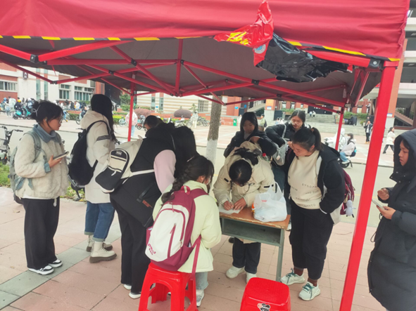 环境保护协会的工作人员早早便在现场设置了废旧电池回收点,工作人员们准备了种子纸、明信片、绿植等小礼品,积极鼓励同学们参与活动。随着活动深入进行,越来越多的同学加入到回收废旧电池的行列中来,他们纷纷将积累的废旧电池投放到回收箱中,以实际行动支持环保事业,展现了长大学子对环保事业的热情与担当。